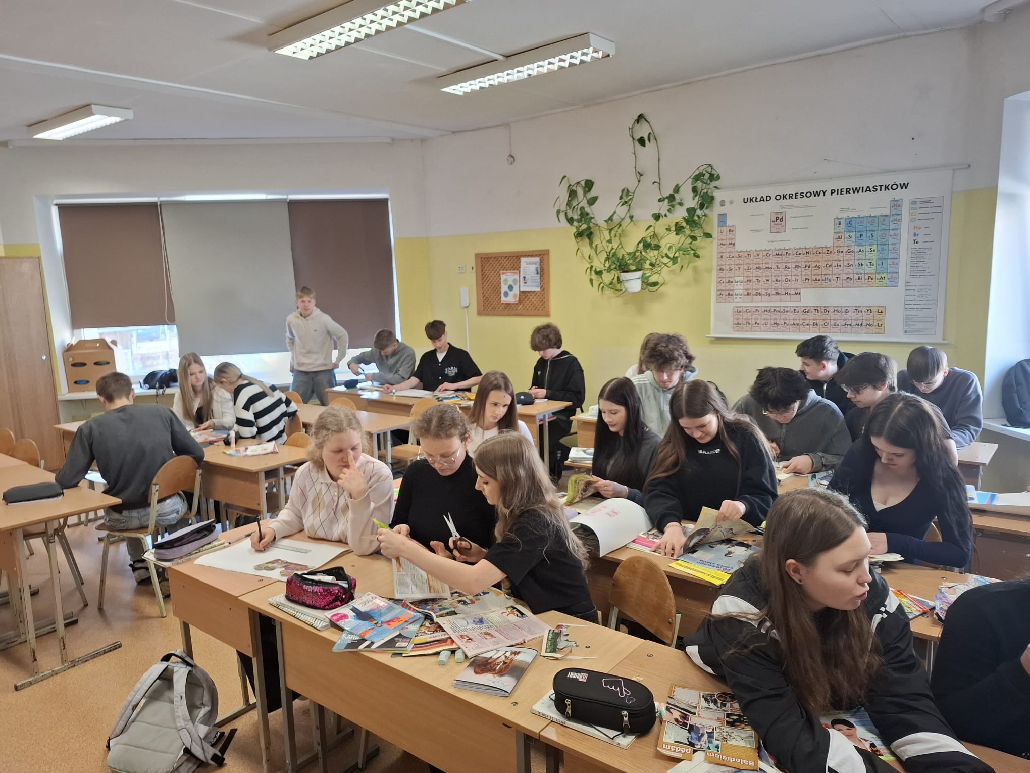10.klašu skolēniem tika organizēta radoša nodarbība “Ķīmija ap mums”, kurā viņi veidoja kolāžas, atspoguļojot ķīmijas klātbūtni ikdienā. Šī aktivitāte palīdzēja skolēniem saskatīt ķīmiju ne tikai laboratorijā, bet arī sadzīvē – pārtikā, kosmētikā, tīrīšanas līdzekļos un citur.