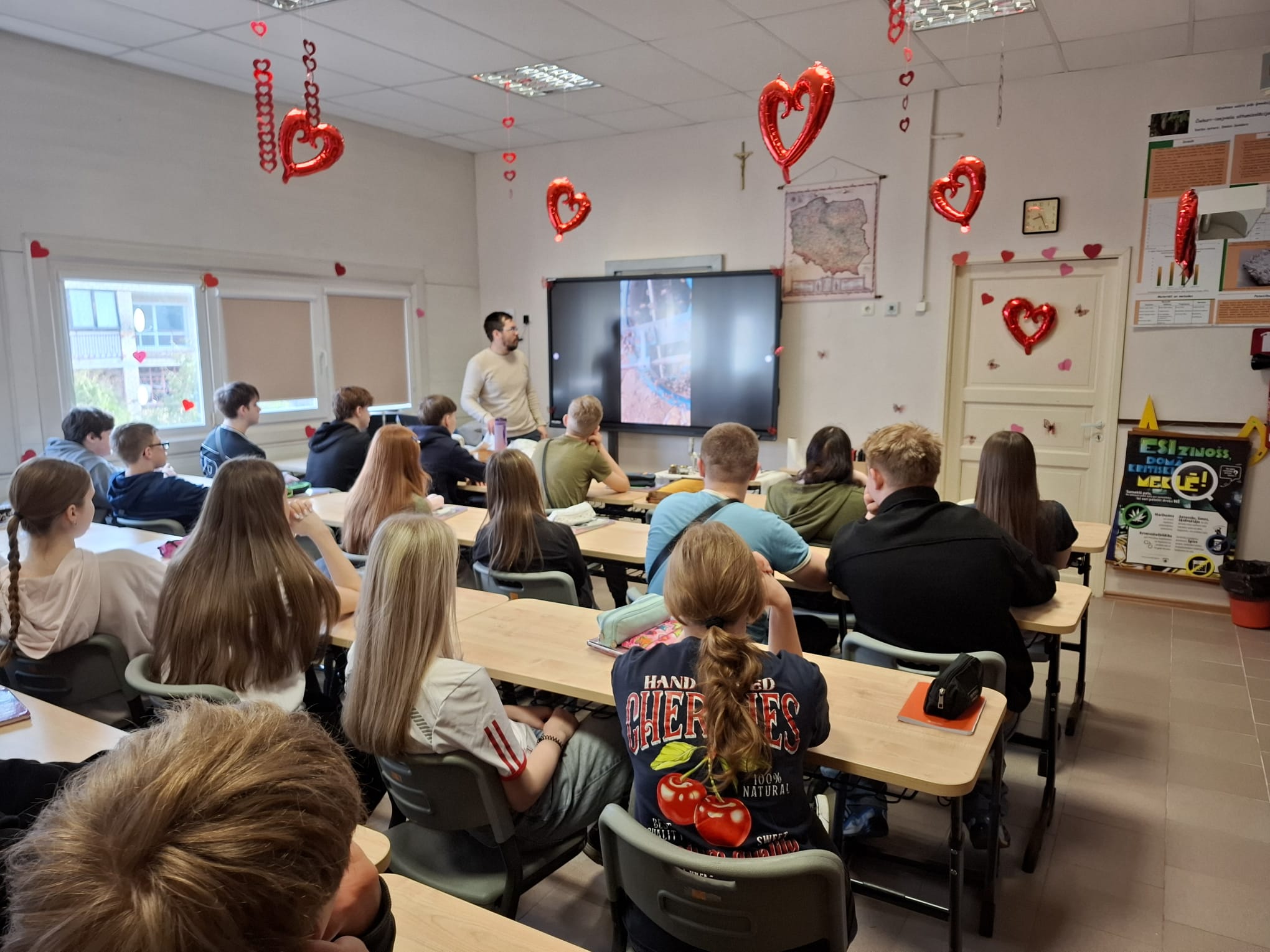 12.klases skolēni klausījās lekciju par dabas aizsardzību un mitrājiem, ko vadīja Dabas aizsardzības pārvaldes pārstāve. Lekcijas laikā tika apskatīta mitrāju nozīme ekosistēmās, to loma klimata regulēšanā un bioloģiskās daudzveidības saglabāšanā, kā arī draudi, ar kuriem tie saskaras.