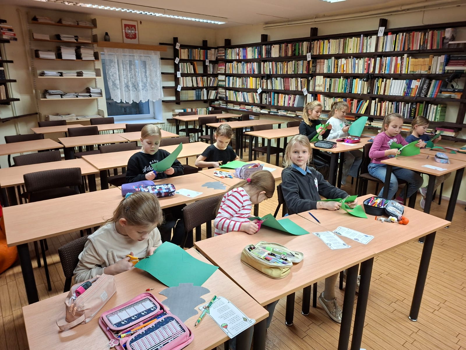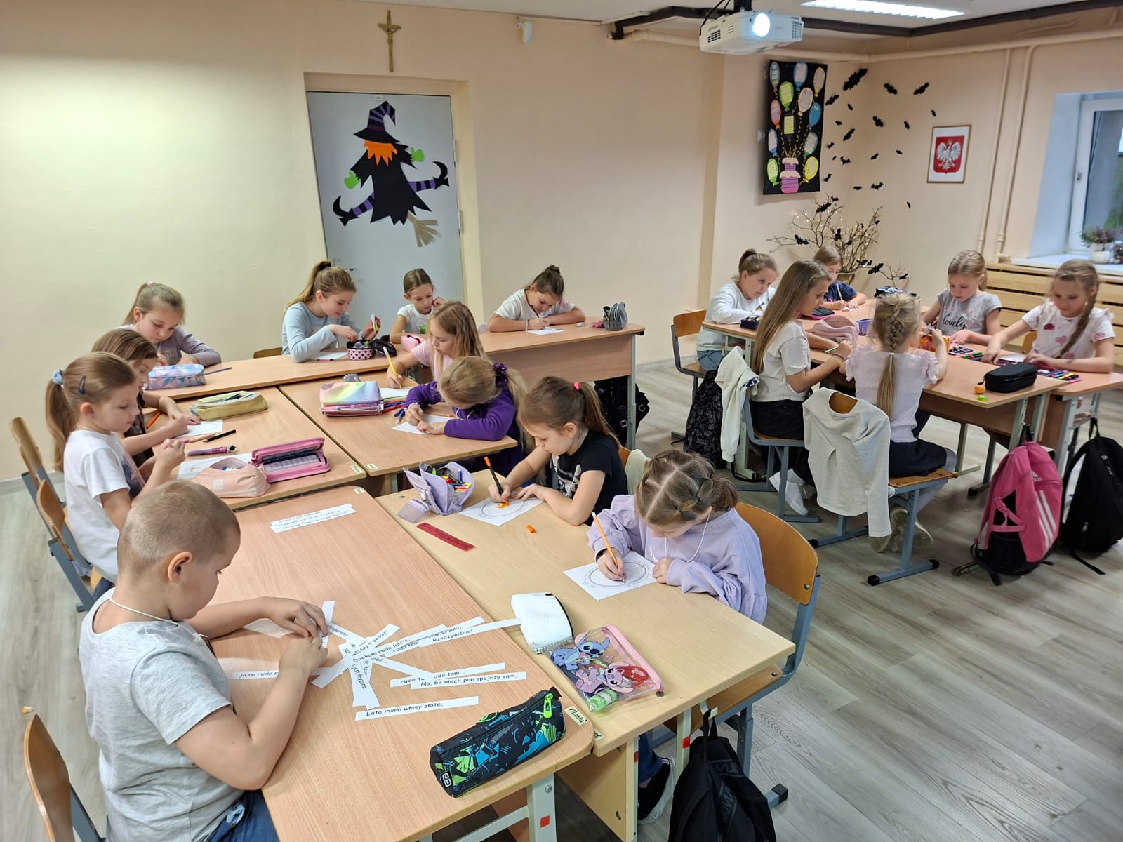 W trakcie zajęć dzieci mają kontakt z polską literaturą i poezją, a towarzyszą temu różnorodne prace twórcze – ilustracje, krótkie formy tekstowe i dekoracje. Powstające materiały są jednocześnie cennym uzupełnieniem naszej šciennej gazetki szkolnej, wzbogacając szkolną przestrzeń o treści promujące język i kulturę polską.