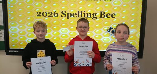 Bērni uzdāvināja viesiem pašu rokām darinātos pavasara ziedus. Noslēgumā ciemiņus priecēja projekta “Sporto visa klase” 3.b kl. skolēni ar sporta skolotāju M.Babri un audzinātāju I.Jonikāni, kā arī karsējmeitenēm no 8.b klases.