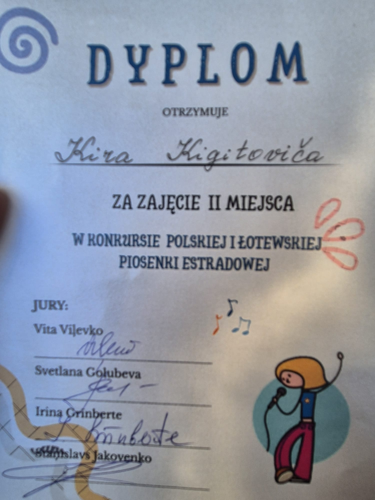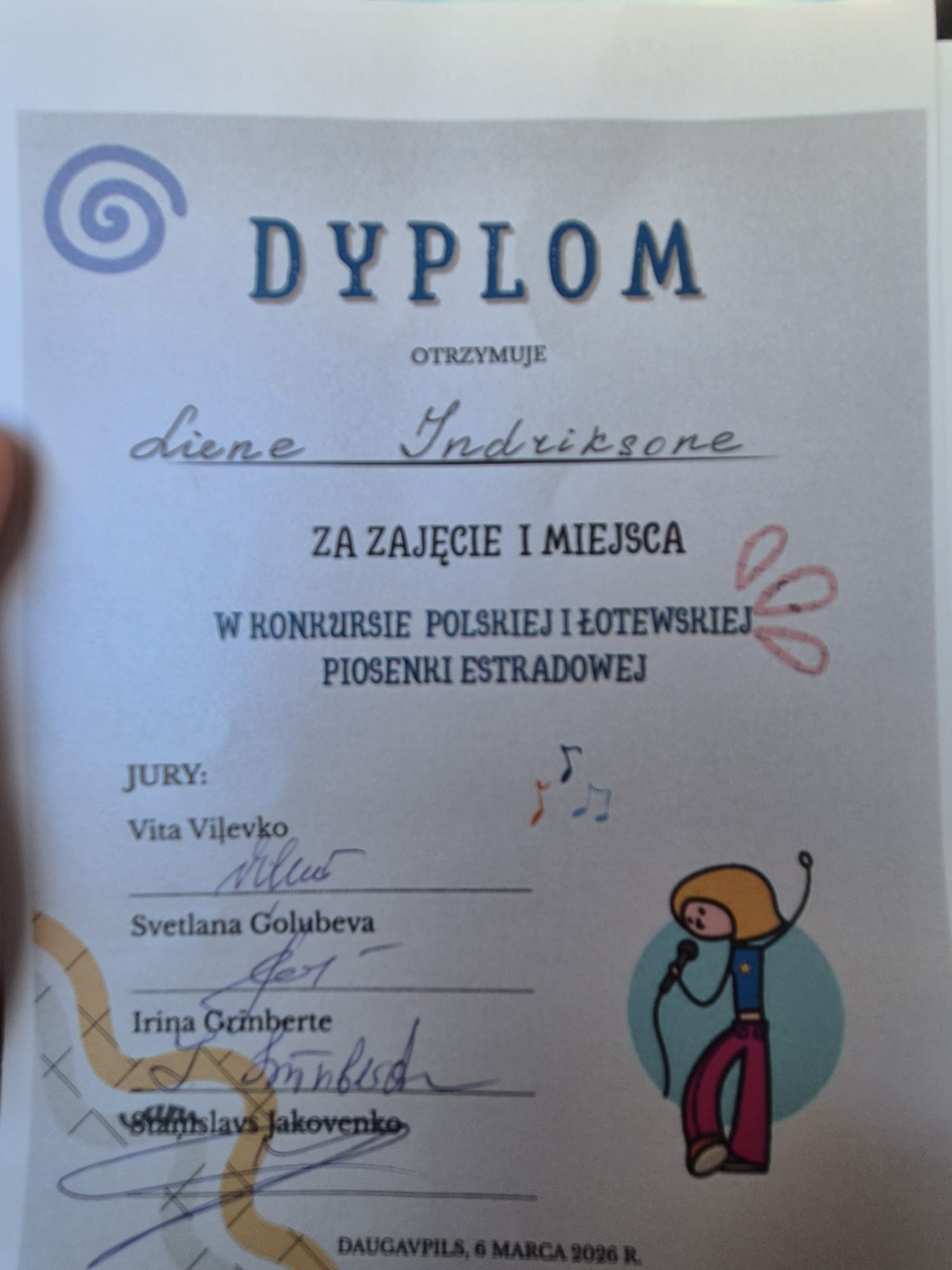 Uczennica klasy 7.b Liene Indriksone zdobyła I miejsce, zachwycając jury swoim talentem muzycznym, kulturą sceniczną oraz pełnym emocji wykonaniem. Z kolei uczennica klasy 5.a Kira Kigitoviča wywalczyła II miejsce, otrzymując wysoką ocenę jury za swój występ.