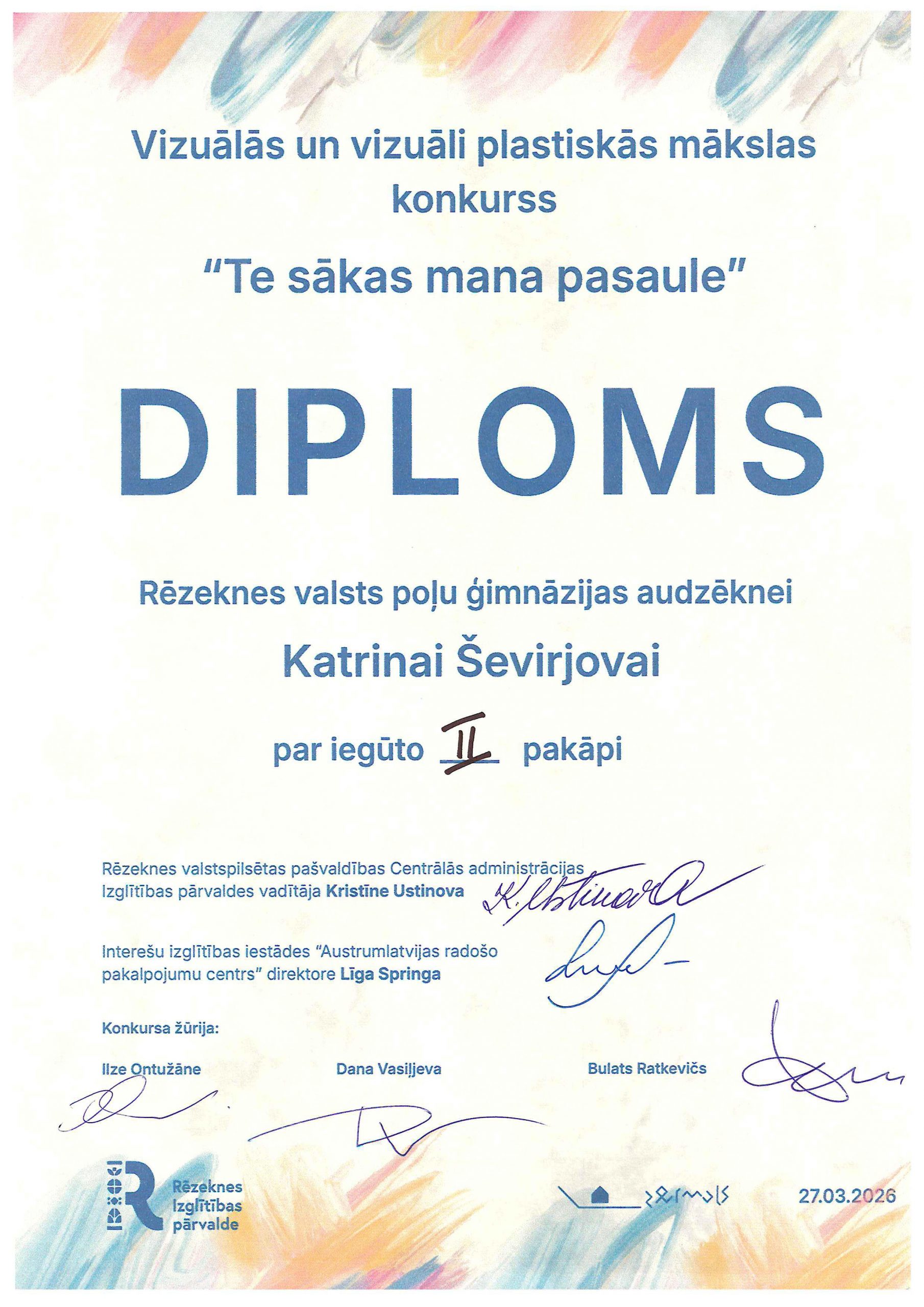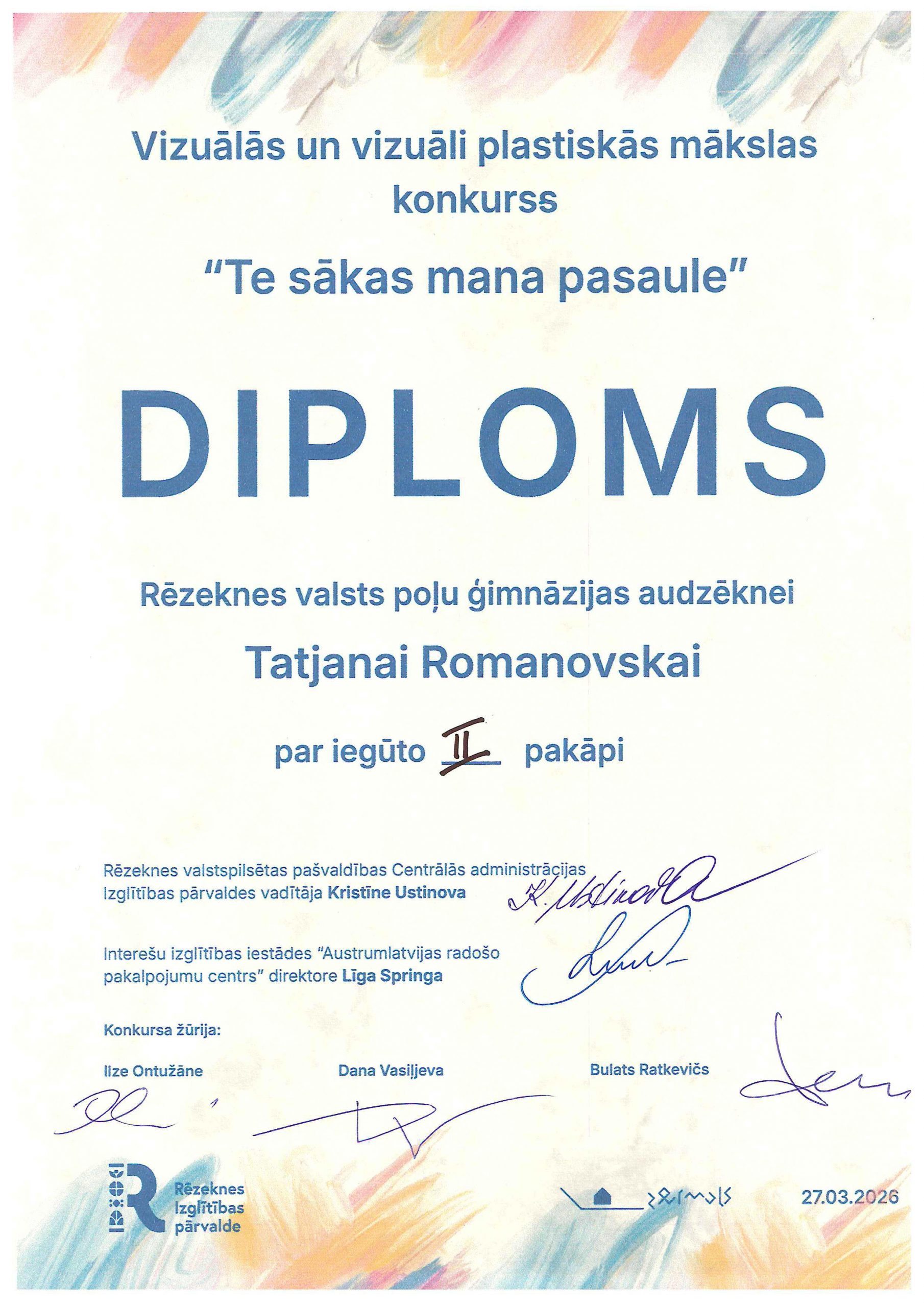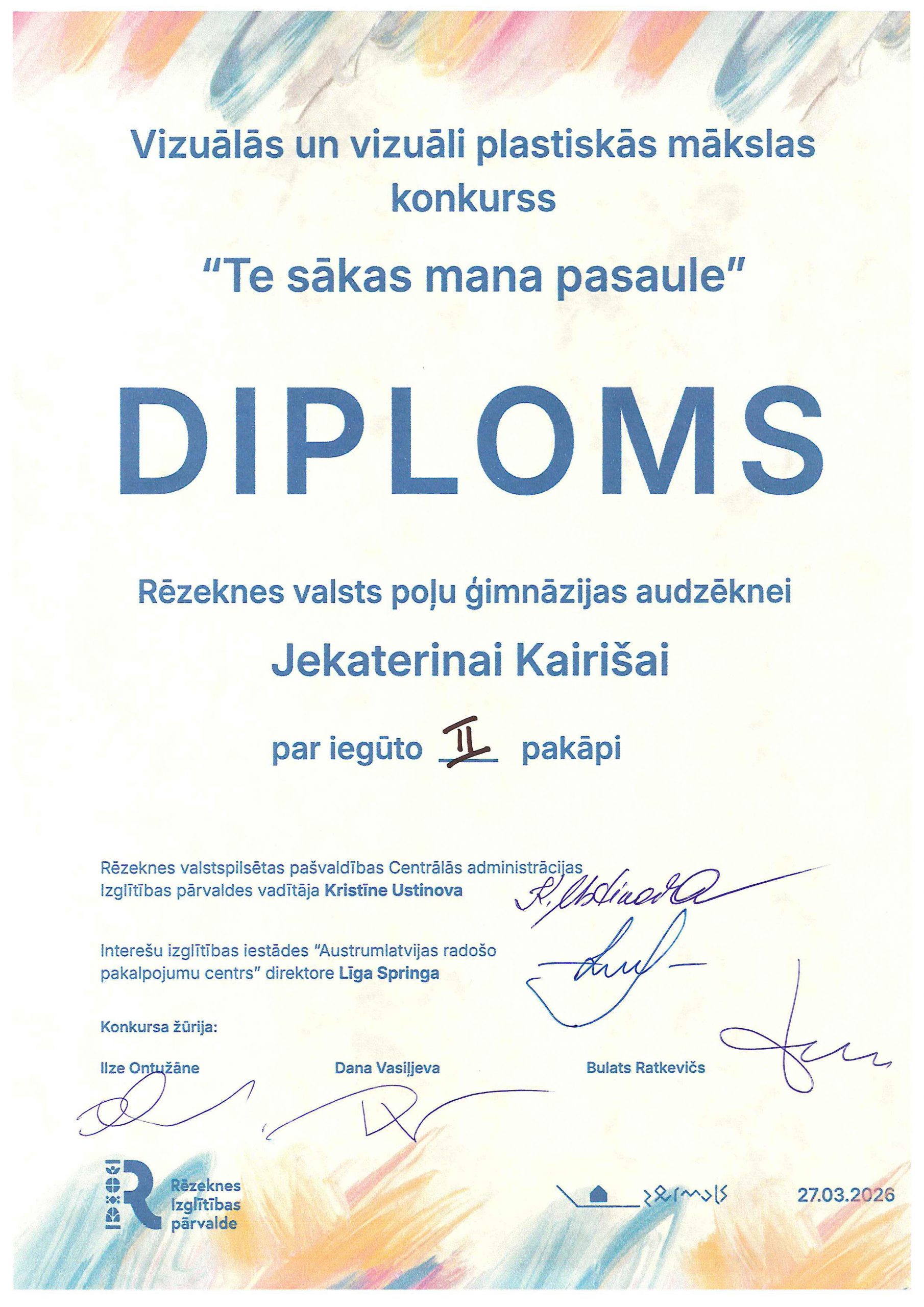 Rēzeknes valsts poļu ģimnāzijas 2. klašu skolēni vizuālās mākslas pulciņa ietvaros radoši strādāja un piedalījās ARPC “Zeimuļs” organizētajā konkursā “Te sākas mana pasaule”. Konkursa mērķis ir rosināt bērnus pamanīt īpašo savā dzimtajā vietā un kultūrvēsturiskajā novadā. Bērni savos radošajos darbos atspoguļoja gan arhitektūras un pilsētvides vērtības – dažādas Rēzeknes baznīcas, koncertzāli Gors, radošo aktivitāšu centru “Zeimuļs”, gan arī tradicionālo Latgales keramiku. Lepojamies un sveicam bērnus ar iegūtajiem diplomiem!