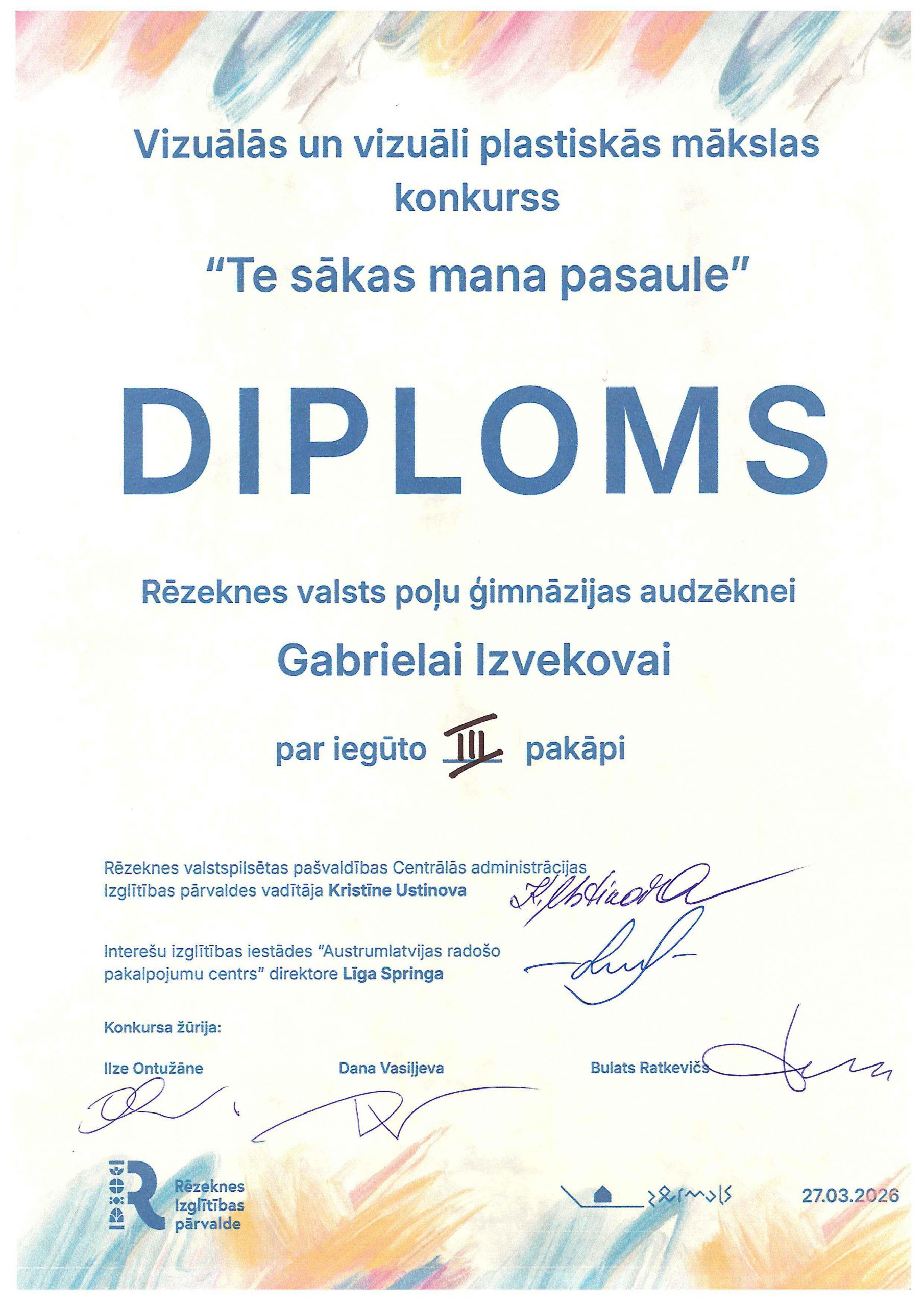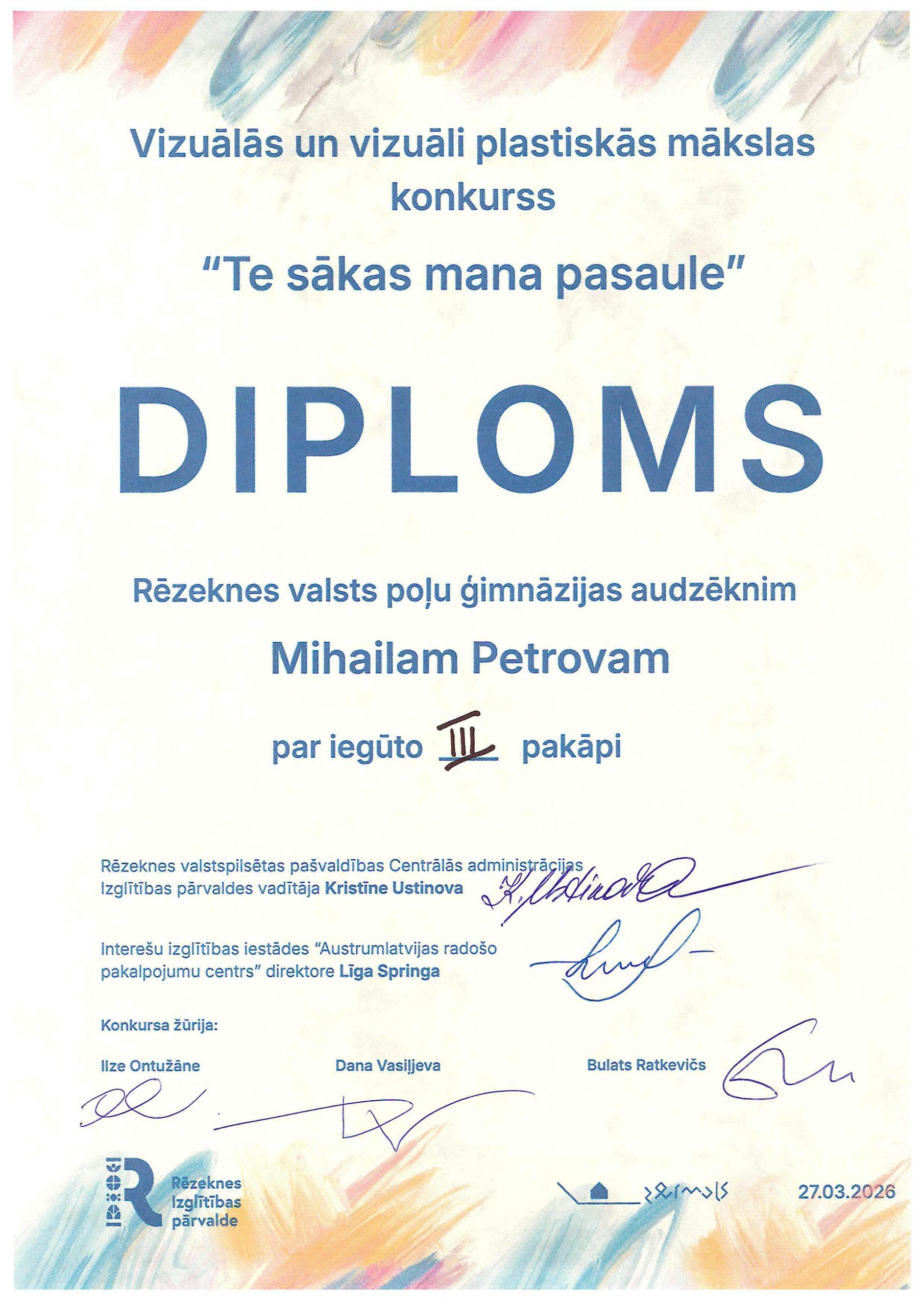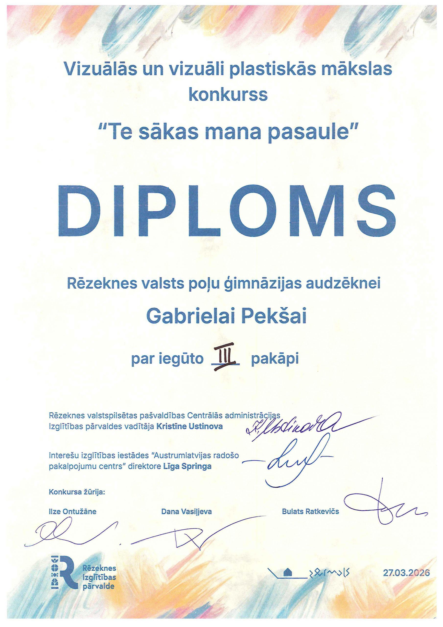 Rēzeknes valsts poļu ģimnāzijas 2. klašu skolēni vizuālās mākslas pulciņa ietvaros radoši strādāja un piedalījās ARPC “Zeimuļs” organizētajā konkursā “Te sākas mana pasaule”. Konkursa mērķis ir rosināt bērnus pamanīt īpašo savā dzimtajā vietā un kultūrvēsturiskajā novadā. Bērni savos radošajos darbos atspoguļoja gan arhitektūras un pilsētvides vērtības – dažādas Rēzeknes baznīcas, koncertzāli Gors, radošo aktivitāšu centru “Zeimuļs”, gan arī tradicionālo Latgales keramiku. Lepojamies un sveicam bērnus ar iegūtajiem diplomiem!