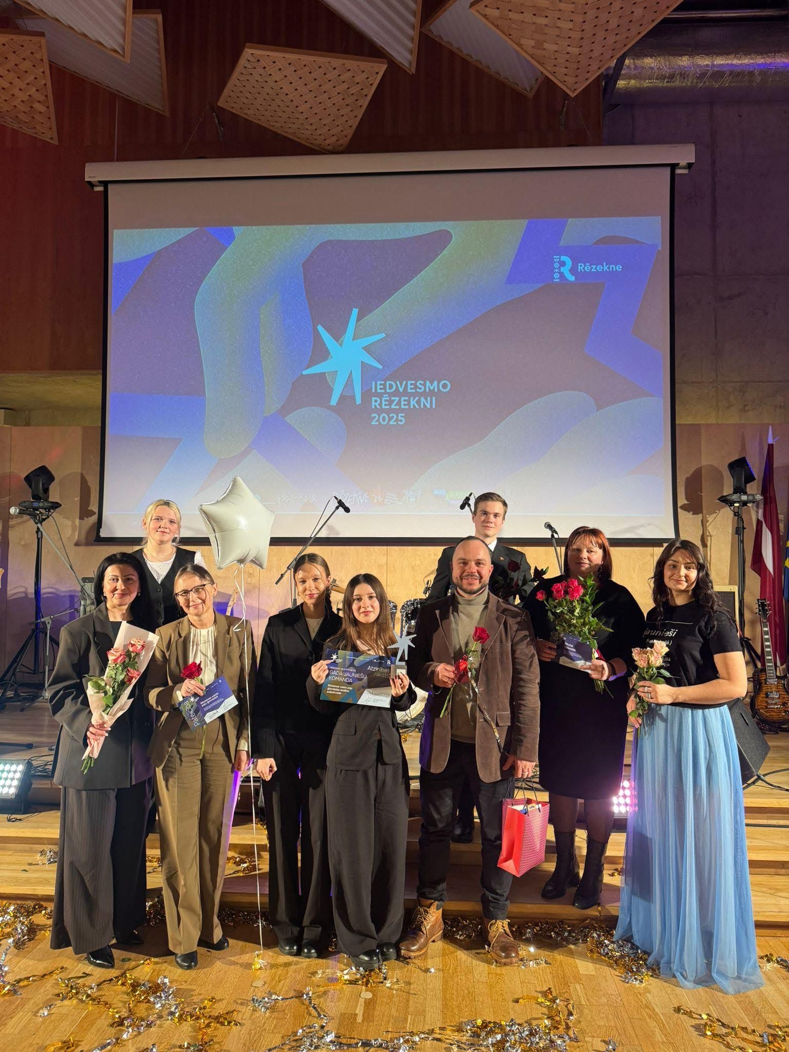 Pasākumā tika godināti aktīvākie, radošākie un iedvesmojošākie jaunieši, pedagogi, organizācijas un iniciatīvas, kas ar savu darbu veicina jauniešu līdzdalību, izaugsmi un pilsētas attīstību 🌱