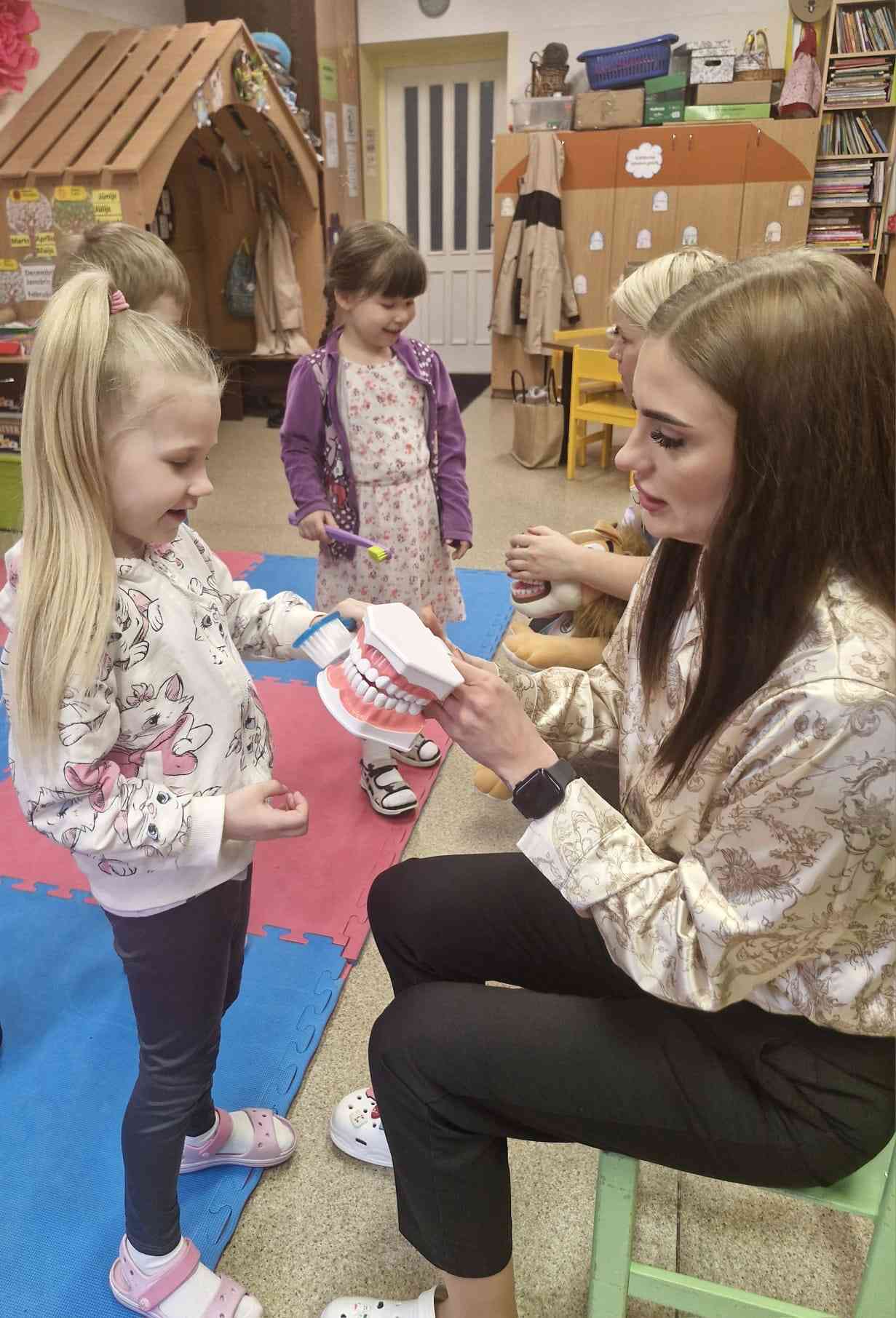 16.aprīlī Rēzeknes valsts poļu ģimnāzijas pirmsskolas piecgadīgo un sešgadīgo grupās viesojās “Zobiņu skola” no Medicīnas centra 36,6. Nodarbības laikā bērni interesantā un saprotamā veidā apguva, kā pareizi kopt savus zobiņus. Speciālisti stāstīja par zobu veselības nozīmi, demonstrēja pareizu zobu tīrīšanas tehniku un atgādināja, cik svarīgi ir regulāri apmeklēt zobārstu. Bērni ar lielu interesi piedalījās aktivitātēs, uzdeva jautājumus un nostiprināja zināšanas par veselīgiem ieradumiem ikdienā.